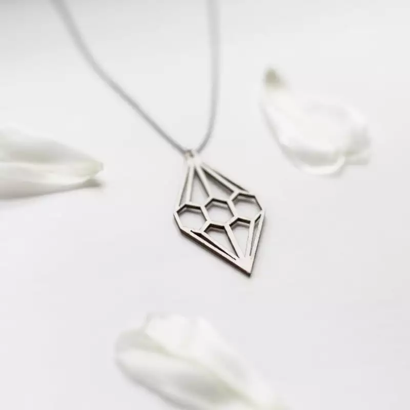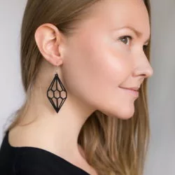 The Diamond model also comes as a necklace and smaller, unique 3D-earrings. All are available in colours of natural wood, black, red and blue.