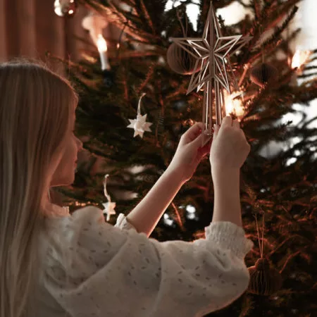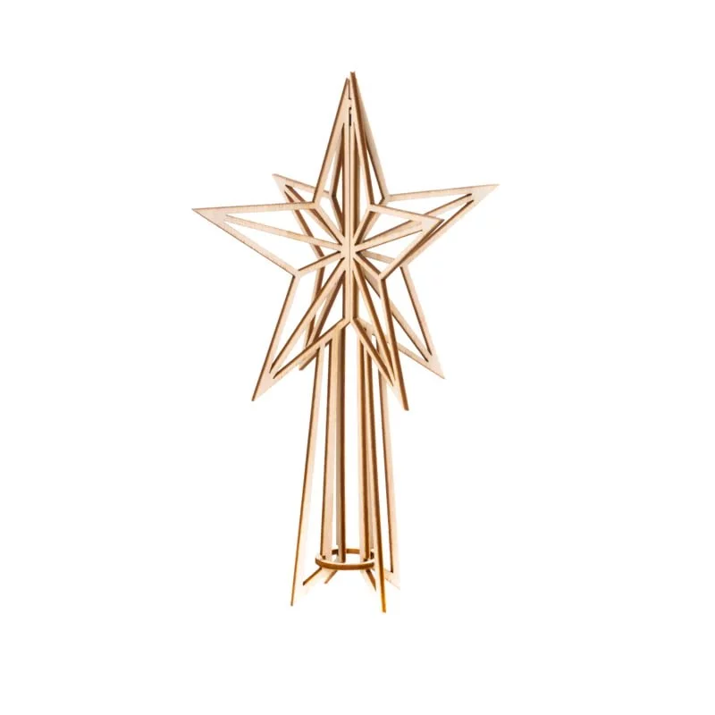 Valonan suosittu viisisakarainen latvatähti on valmistettu suomalaisesta, vastuullisesti tuotetusta koivuvanerista. Vakaa puumateriaali takaa sen kestävän mutta kevyen rakenteen: tähti ei siis paina hennonkaan kuusen latvaa. Se on myös hyvin helppo pujottaa paikalleen. Latvatähden klassinen malli on kolmiulotteinen, joten se sädehtii samalla lailla joka suuntaan. Kuusen ohella elegantti latvatähti pysyy kauniisti pystyssä myös pöytäkoristeena. Vaalea koivun sävy tuo viehättävää luonnollisuutta joulun sisustukseen.