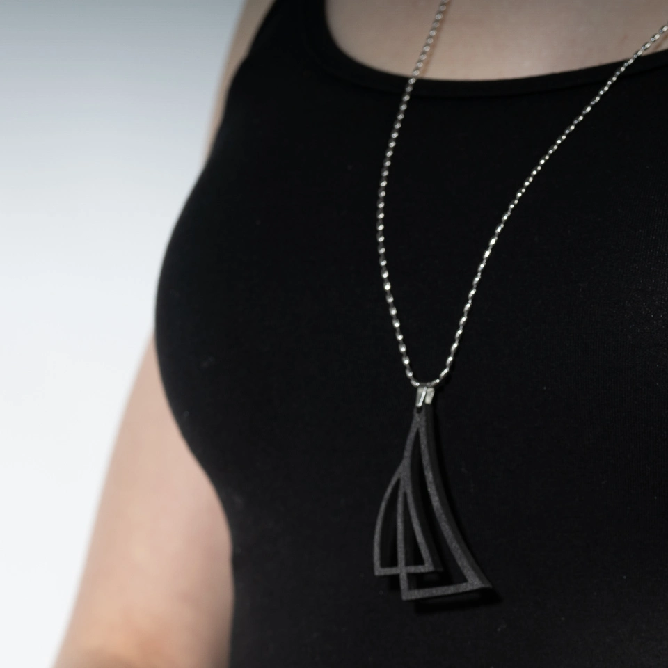 Korusarjan ensimmäinen koru on Purje, joka on saatavilla sekä korvakoruina että riipuksena. Se rakentuu kahdesta kevyesti lomittuvasta purjeen ääriviivasta – ilmavasta muodosta, jossa on pehmeää ja luonnollista liikettä.